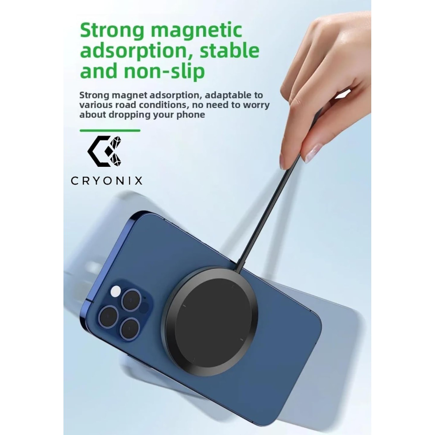 SECURE DESIGN: Strong magnetic grip maintains steady phone position even on bumpy roads, perfect for navigation and hands-free use