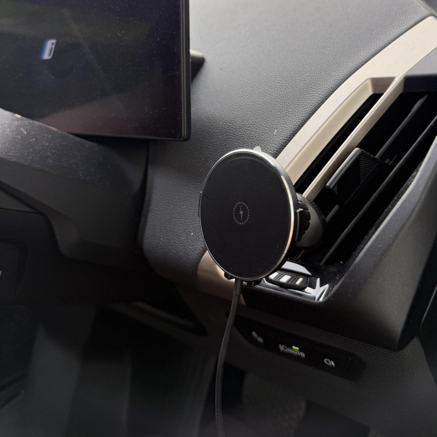 Elevate your driving experience with this innovative MagSafe-compatible car vent mount charger. Featuring a robust magnetic attachment system, this device securely holds and charges your compatible iPhone whilst on the move. The versatile mount boasts a 360-degree rotatable head, allowing you to position your device at the perfect angle for navigation or hands-free operation. Installation is straightforward with a sturdy clip mechanism that attaches firmly to most car air vents.