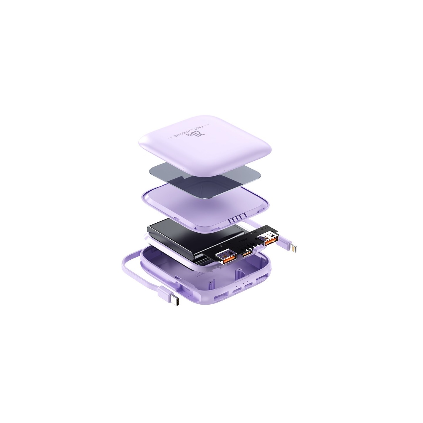 Never search for a charging cable again. The MIGNONNE features built-in Type-C and Lightning cables, ensuring you're always ready to power up your devices.